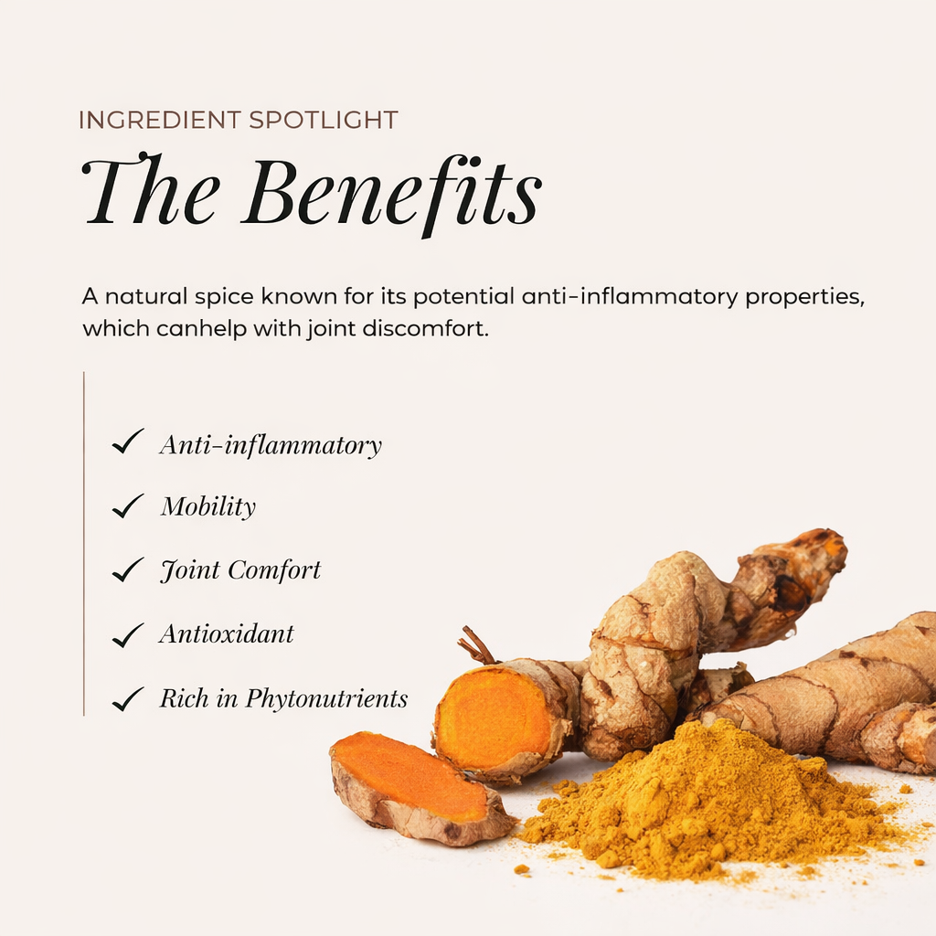 Helps support the body’s natural inflammatory response using turmeric curcumin, making daily movement feel more comfortable.